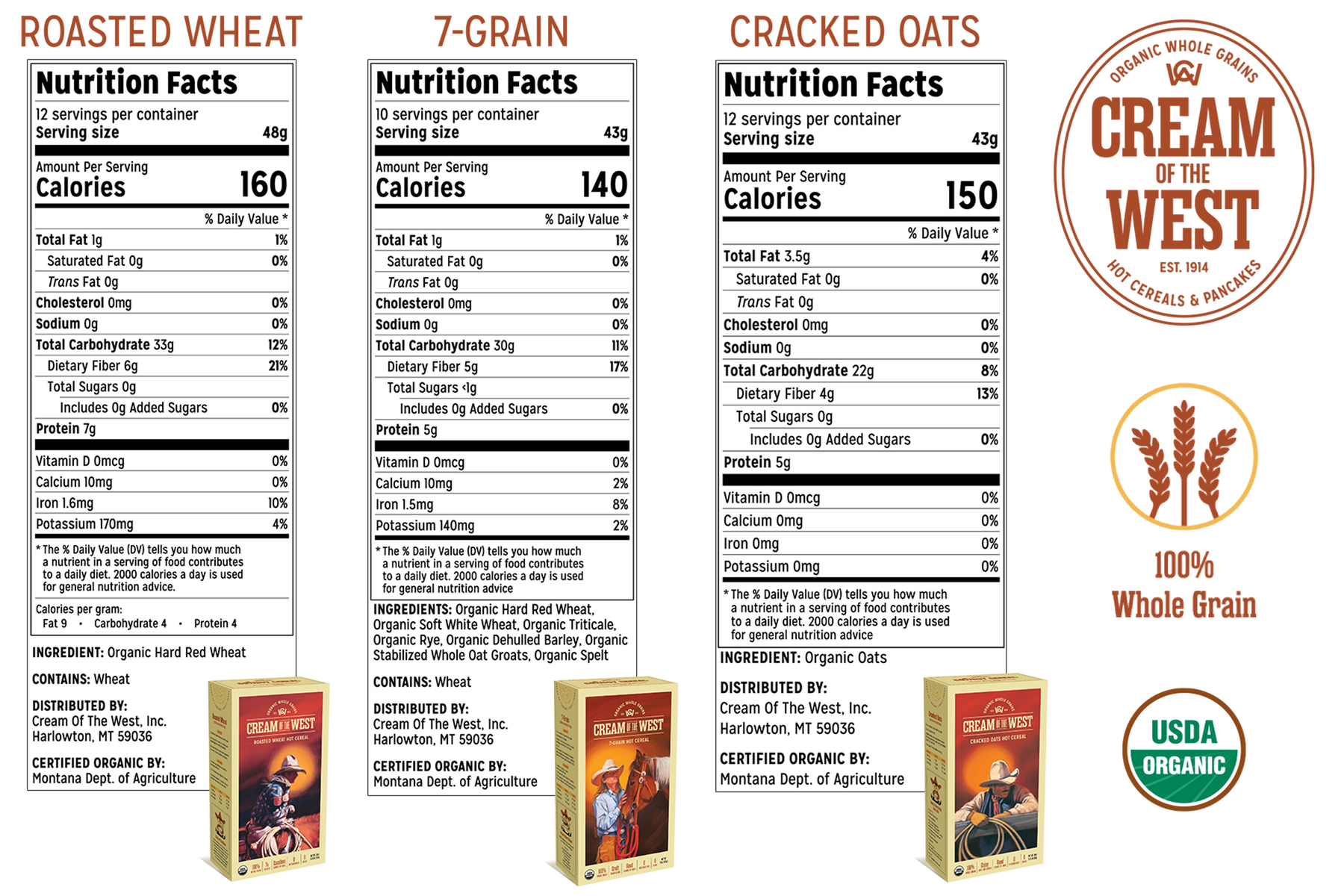 Our Top Hands – Roasted Wheat, 7-Grain and Cracked Oats – are lassoed together and tied up with a spoon. All 100% Certified Organic. It’s a healthy, hearty Taste of Montana for a great price!